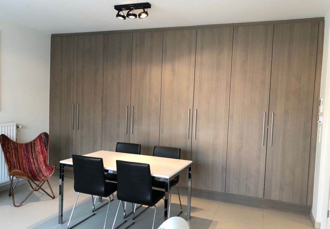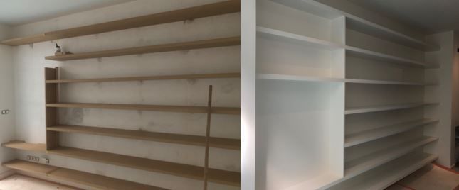 Wij onderscheiden maatwerk in MDF en in melamine, laminaat of fineer. MDF wordt door ons zelf geproduceerd en gelakt (al dan niet ter plaatse). Meestal gaat het dan om schabben, omkastingen, e.d. Gaat het om kasten in melamine, laminaat of fineer dan wordt de productie uitbesteed aan één van onze leveranciers zodat we een optimale kwaliteit kunnen garanderen.